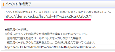 イベントを新規作成する際は、もしページのアドレスがわからなくなった場合でも後から確認することが出来るよう、メールアドレスを入力しておくことをお勧めいたします。 |